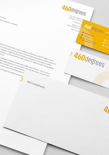 The rebrand was completed for the new company name of 460degrees, comprising of a new logo, company icons, colour palette, corporate font, Google suite templates and signage. In addition a corporate guidelines document was created