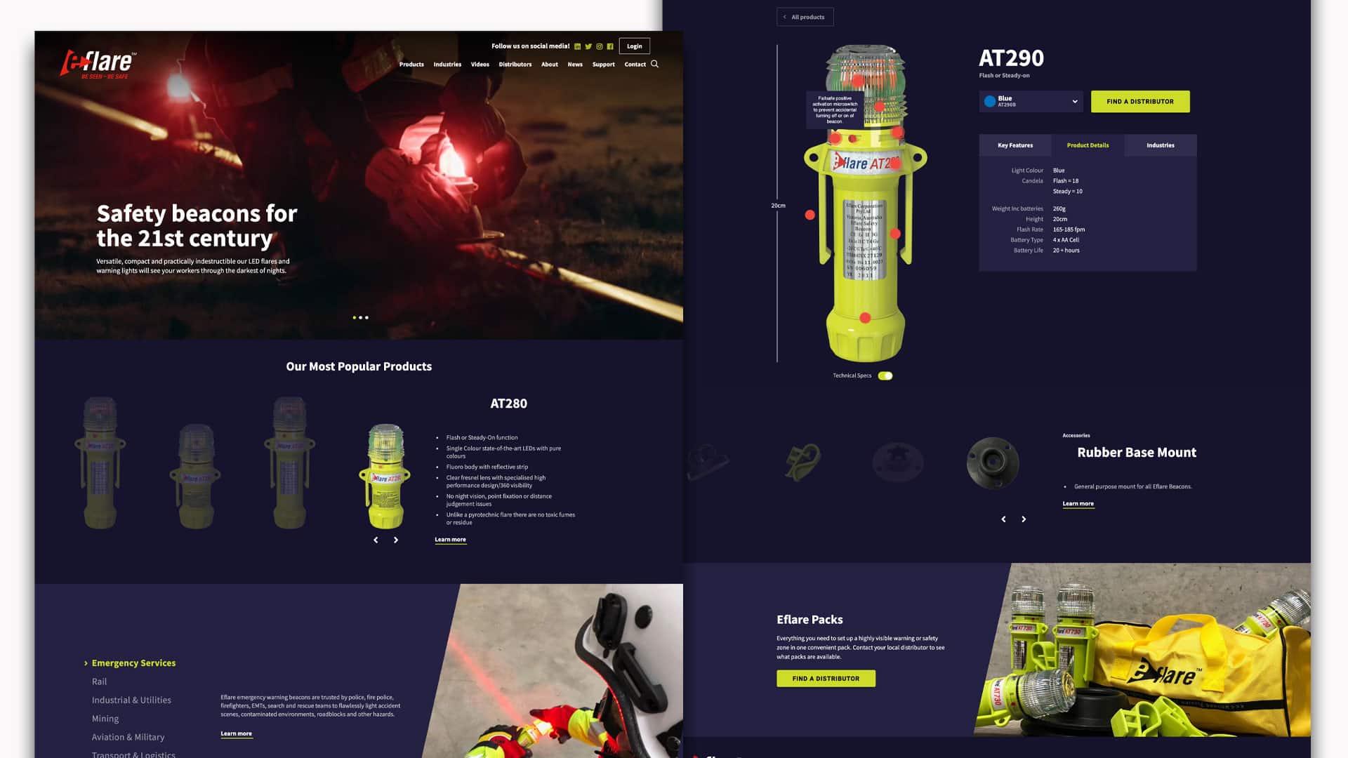 As a world-leader in LED safety technology, offering products to the emergency services, mining, aviation, industrial and transport, Eflare contracted us to help them increase their brand awareness and exposure globally with a strong brand redevelopment.